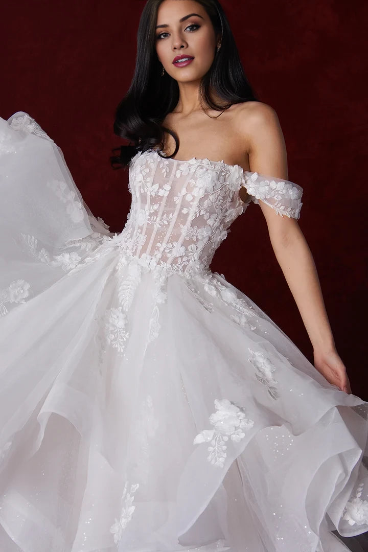 Sequin Tulle Ruffle Skirt Ball Gown with Sheer Bodice Wedding Dresses