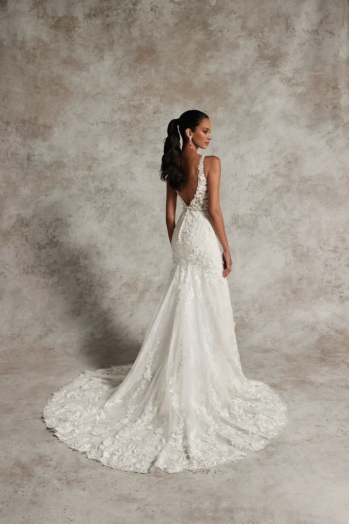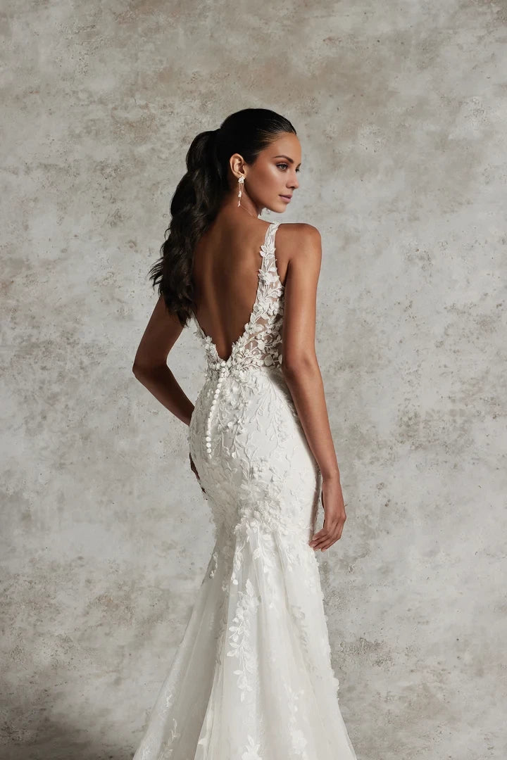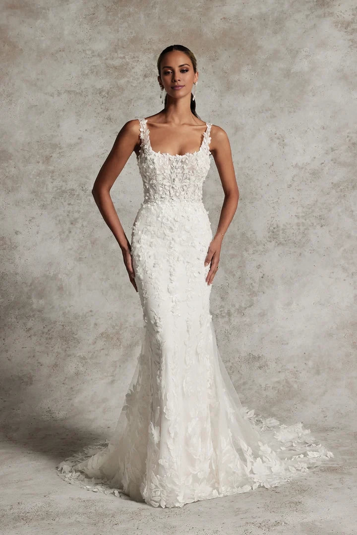 Square Neckline Fit and Flare Wedding Gown with 3D Appliqués Wedding Dresses - US 2 / UK 6 / EU 32