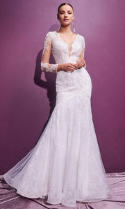V-Nec Plunge Embroidered Long Sleeve Wedding Dresses