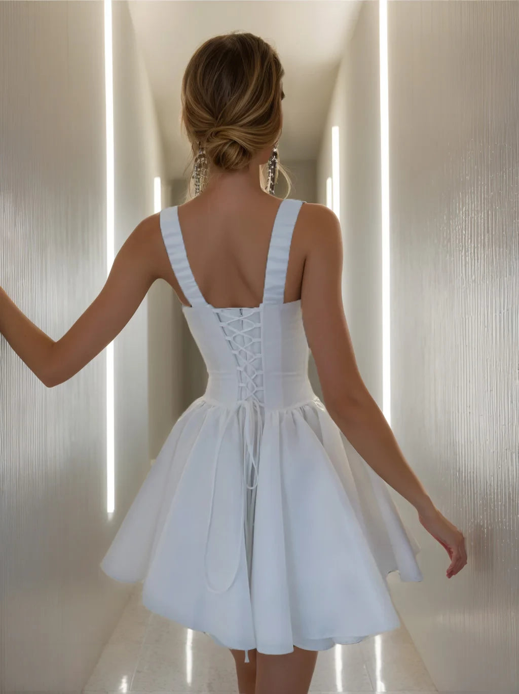 Elegant A - Line Square Neck Sleeveless Lace - Up Back Mini Length Homecoming Dresses