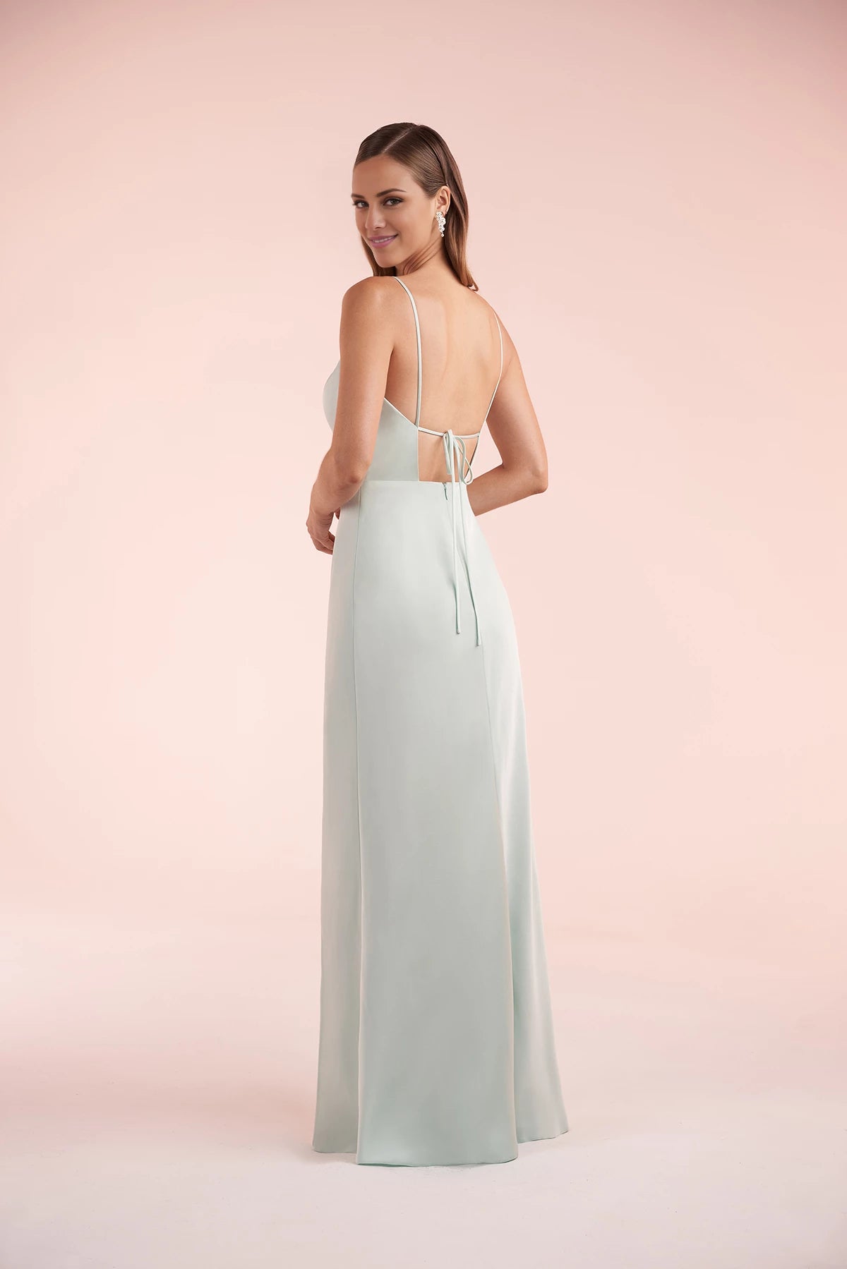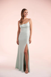 Elegant Spaghetti Straps Sleeveless Lace Up Back Back Zip Floor-Length Side Slit Bridesmaid Dress