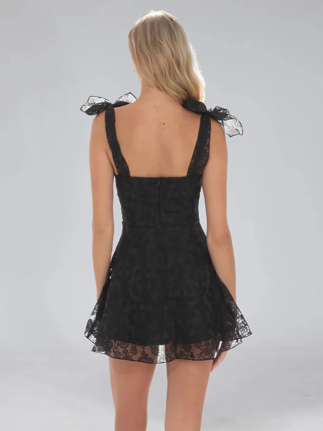 Romantic A - Line Square Neck Bow Strap Zipper Back Mini Length Homecoming Dresses