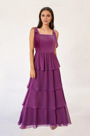 Vintage Square Neck Sleeveless Back Zip Floor-Length flounce Bridesmaid Dress